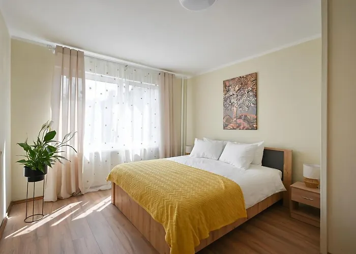 52 m² Grizinparka Apartamenti Rīgā ir aptuveni 25 minūšu pastaigas attālumā no Bastejkalna parka. Atrodoties tikai dažus soļus no Skurstenslaukis un Murnieks, šis 1 guļamistabas dzīvoklis jūs pārsteigs ar piknika zonu un dārzu.